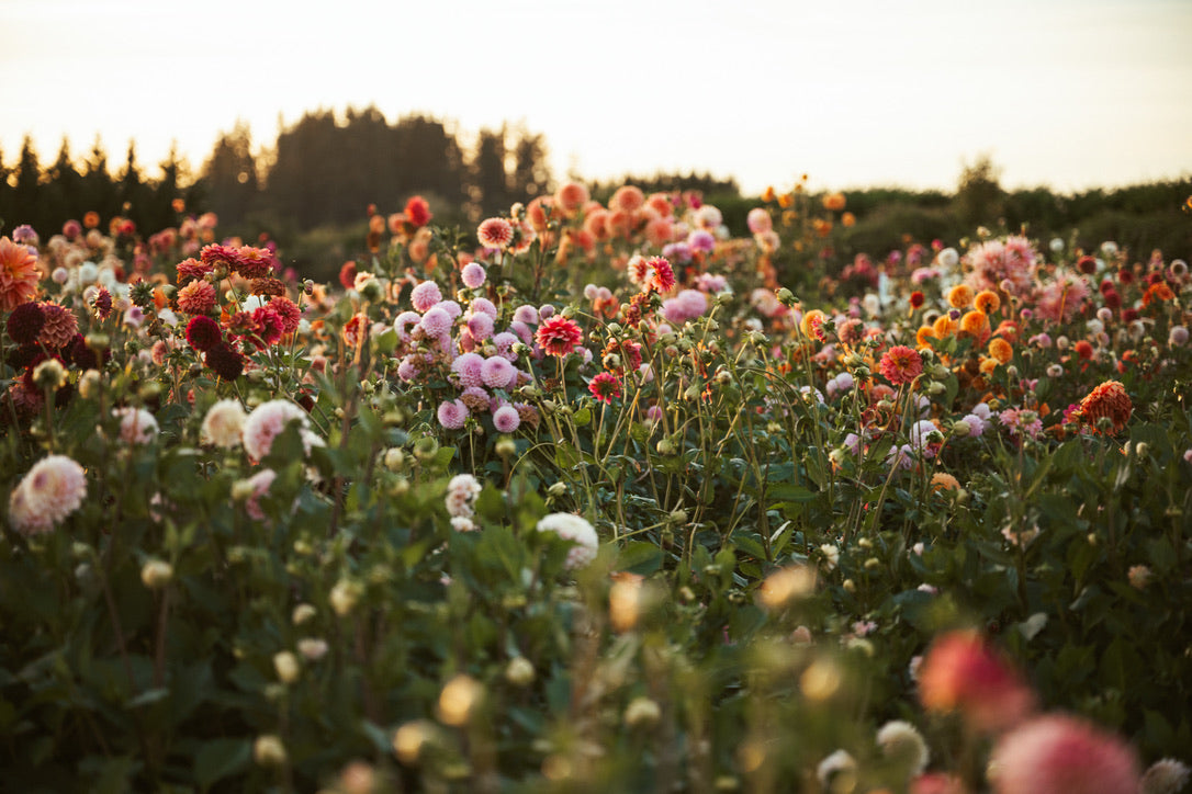 Experience the magic of dahlias, cultivated with love on our regenerative farm in Washington State